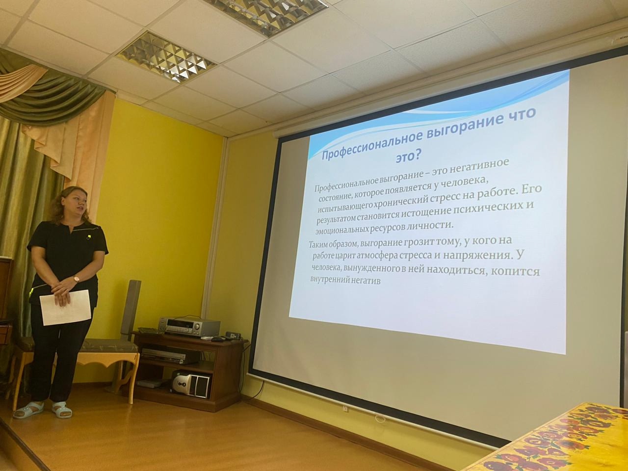 В нашем учреждении 4 сентября психологом была проведена профилактика профессионального выгорания, так как им подвержены специалисты, чья деятельность связана с высокой ответственностью, общением с людьми и многозадачностью. Поэтому очень важно, вовремя и своевременно обнаружить симптомы профессионального выгорания и устранить их, были даны рекомендации для сотрудников.
